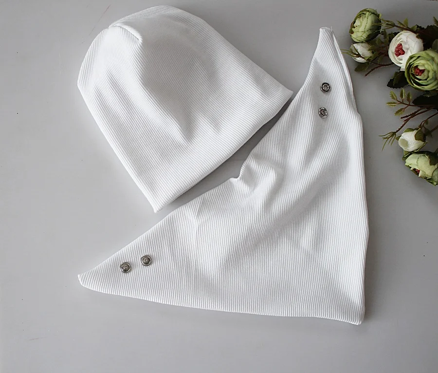 Zestaw czapka+chusta prążek biel chrzest