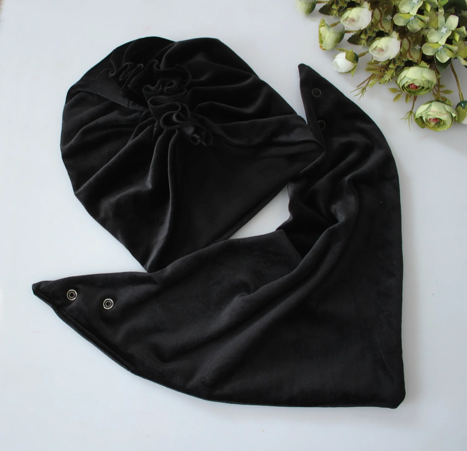 Zestaw turban +chusta czerń welur wiosna /jesień