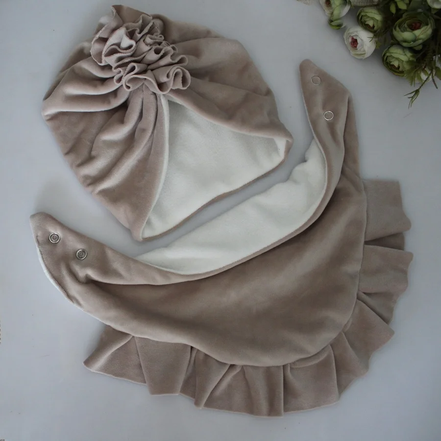 Zestaw turban +chusta z falbanka beż welur zima