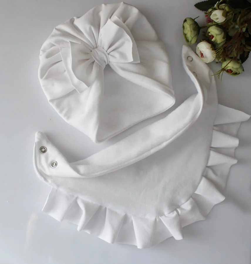 Zestaw turban kokarda +chusta z falbanką biel zima