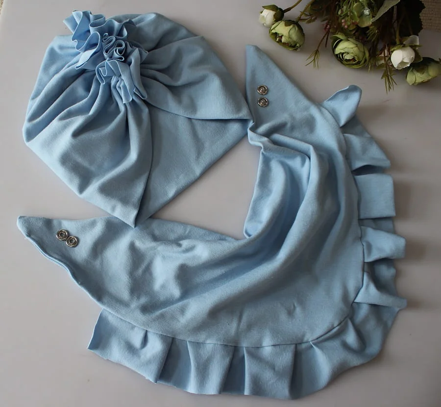 Zestaw turban podwójny +chusta błękit wiosna /jesień