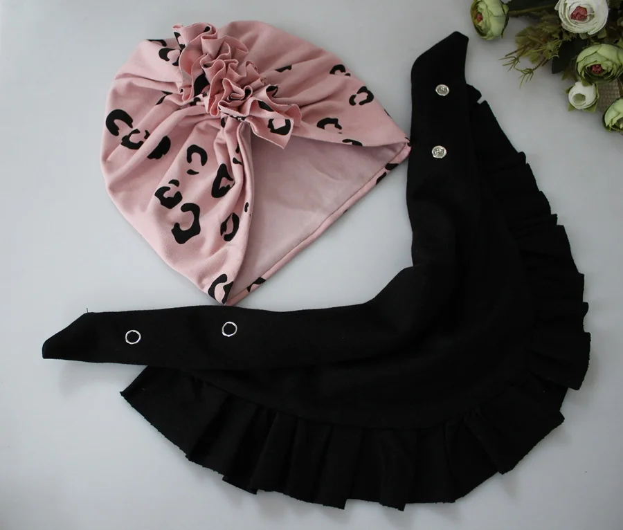 Zestaw turban podwójny +chusta panterka róż wiosna/jesień