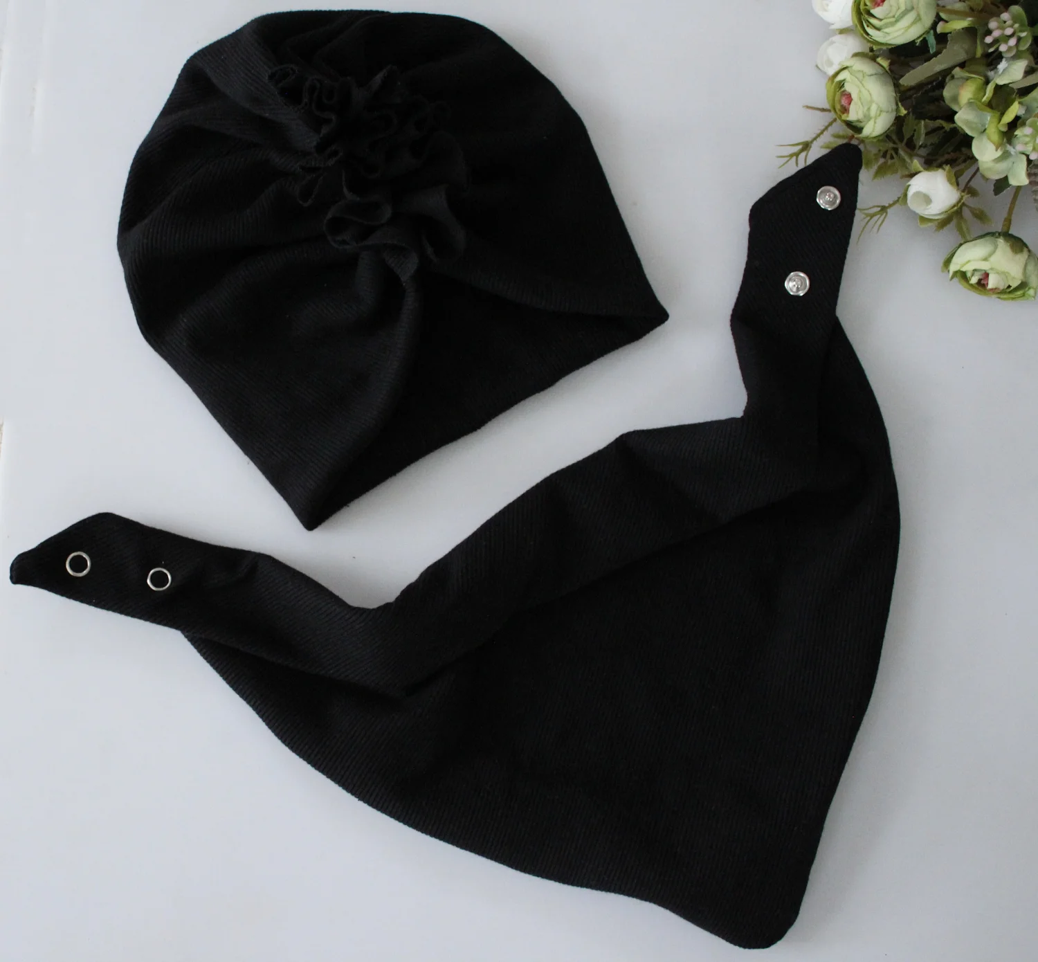Zestaw turban podwójny prążek +chusta czerń wiosna /jesień